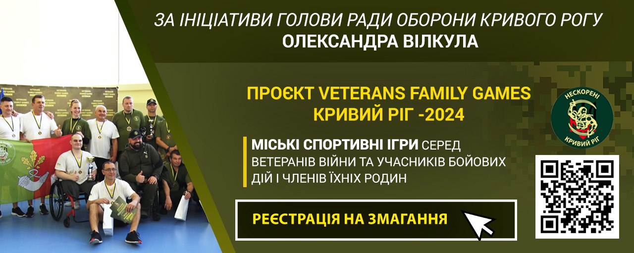 4 травня в Кривому Розі розпочнуться другі міські спортивні ігри серед ветеранів війни та учасників бойових дій й членів їхніх родин VETERANS FAMILY GAMES Кривий Ріг – 2024
