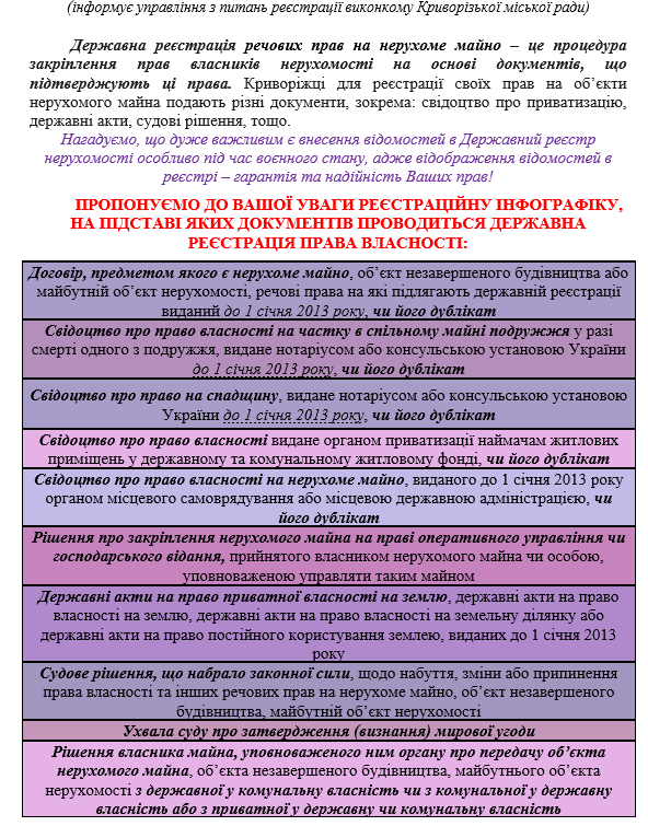 ДО УВАГИ КРИВОРІЖЦІВ ТА ВИМУШЕНИХ ПЕРЕСЕЛЕНЦІВ: ПІДСТАВИ РЕЄСТРАЦІЇ ПРАВА ВЛАСНОСТІ ТА ІНШИХ РЕЧОВИХ ПРАВ НА НЕРУХОМІСТЬ У ЦНАП «ВІЗА» («ЦЕНТР ДІЇ»)